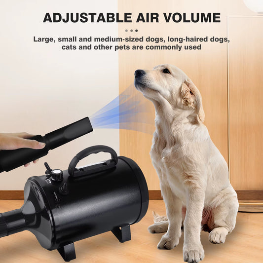 2000W-2800W Pet Hair Dryer, 35°C and 65 °C, Speed: 50M/S ~ 100M/S, Stepless Adjustable, 2.5M Extendable Hose, 3 Nozzles